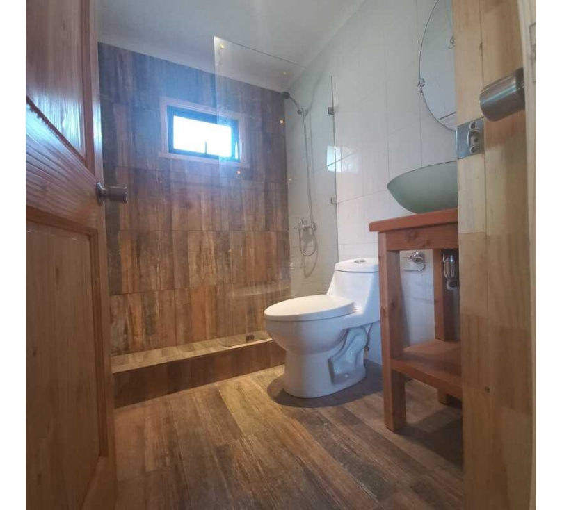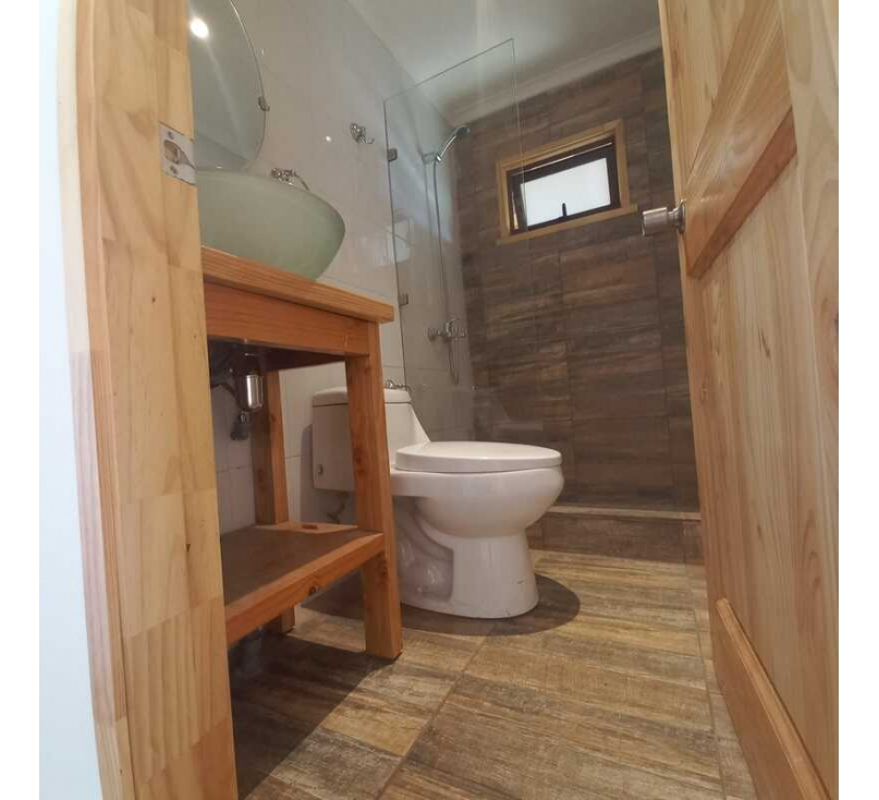 Pieza de multiuso (dormitorio, quincho, oficina) con baño, esta conectada a la casa por el estacionamiento techado.