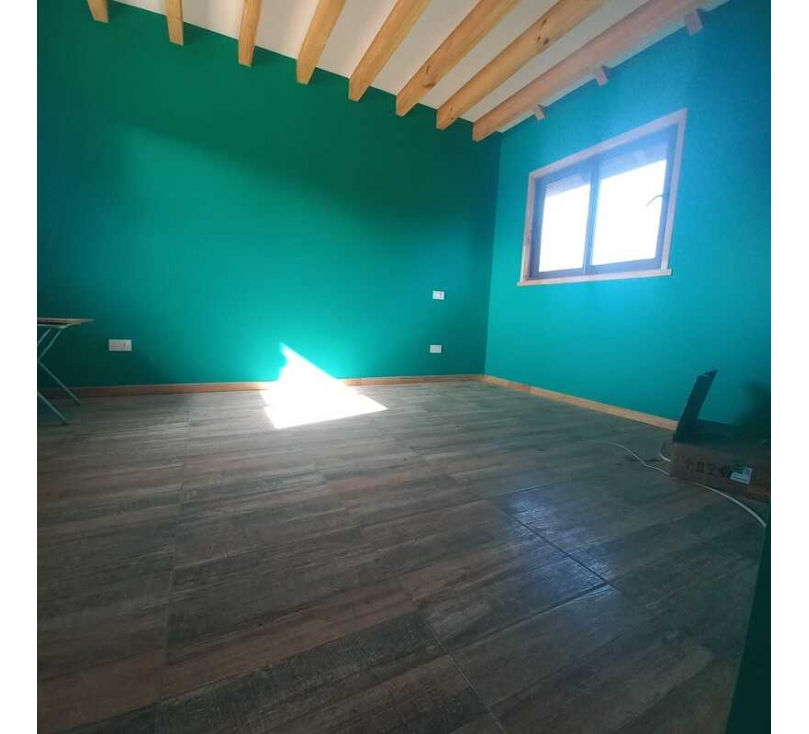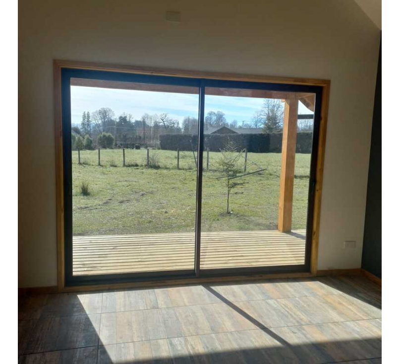 Casa de un piso, amplia terraza, ventanas termopanel, estacionamiento techado.