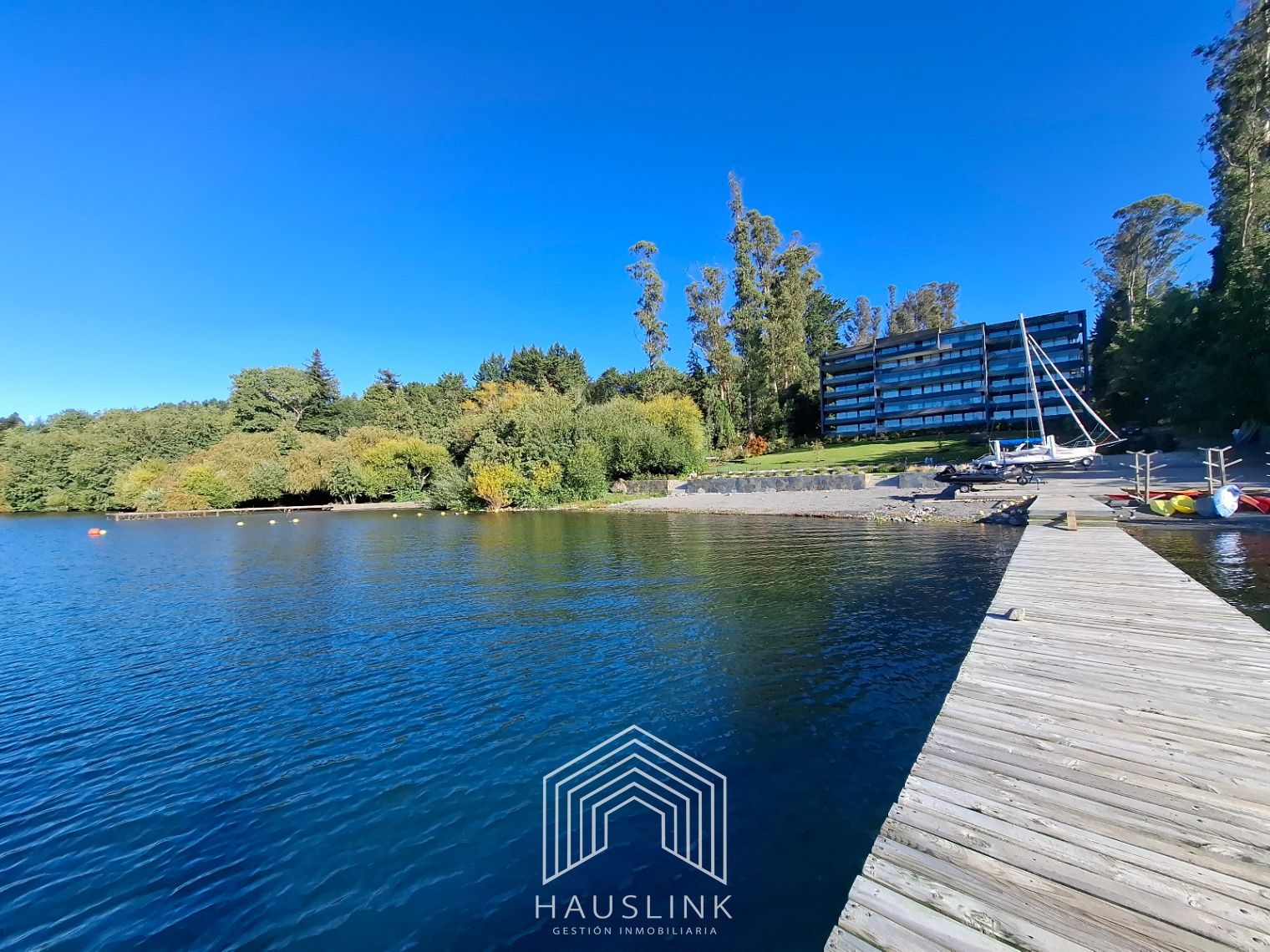 Exclusivo departamento en condominio a orilla de lago, en el kilómetro 3 Camino Villarrica Pucón, inserto en un bosque nativo entre maitenes, pinos y cipreses.