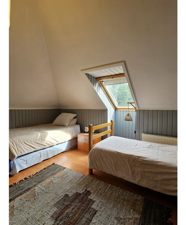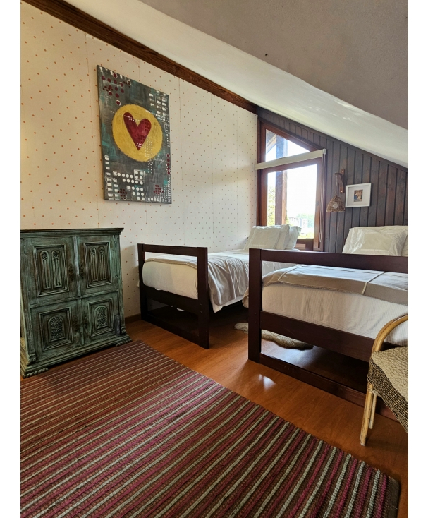 1 dormitorio secundario con cama nido y cama 1 plaza, con linda luz natural mediante Velux con cortina