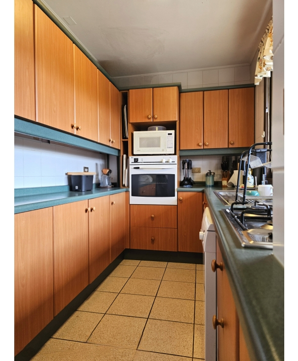 Cocina totalmente equipada con electrodomésticos Bosch comedor de diario. Incluye refrigerador, microondas, horno eléctrico, lavavajillas, lavadora, vajilla y utensilios