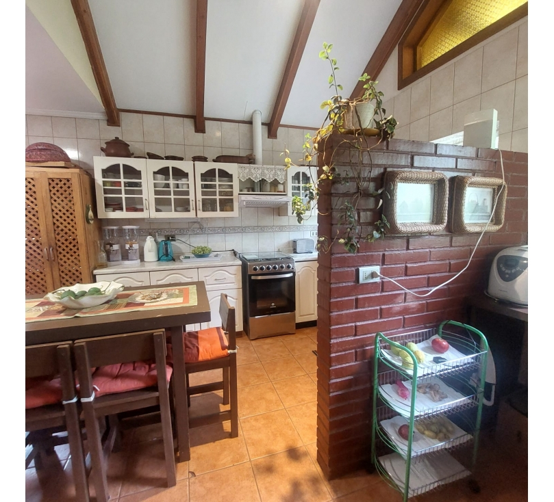 Cocina comedor amplia con cocina a leña, logia separada por tabique, comedor de diario