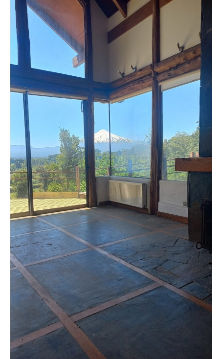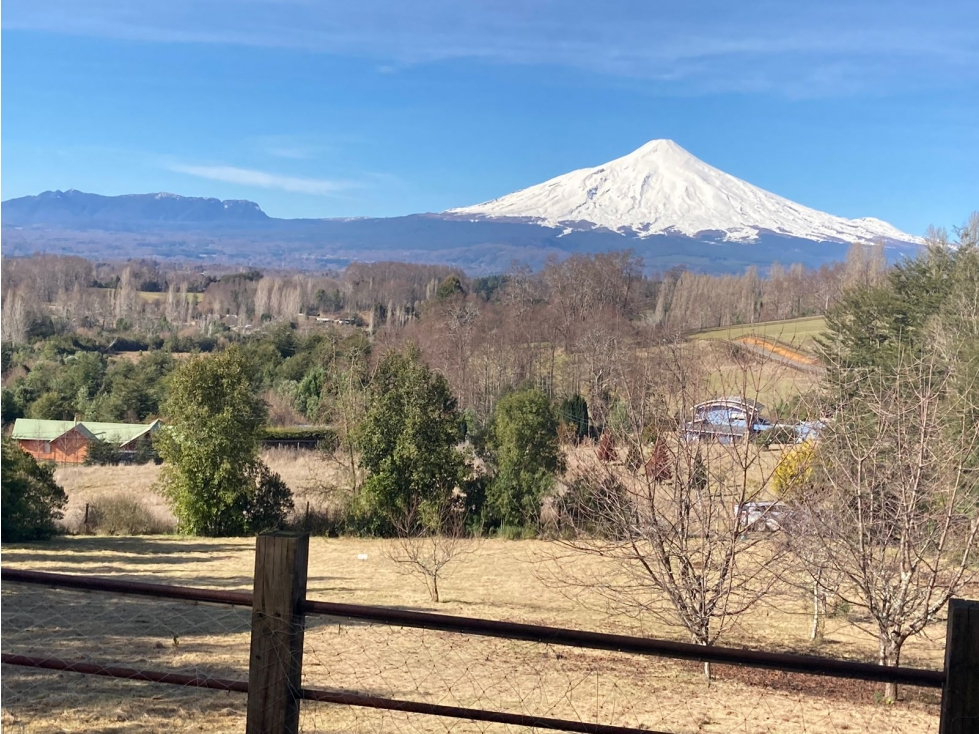 HERMOSA casa en parcela de 5000m2 con vista privilegiada al majestuoso Volcán Villarica Ubicada a 9 km del radio urbano de Villarrica, a 8.5 km del nuevo Hospital, a metros del nuevo colegio Ancona, 5 minutos del Colegio Alemán y a 20 del Colegio Southern Oxford y muy cercana a nuevos proyectos educativos en desarrollo, incluyendo nueva sede Colegio Southern Oxford, Ancona, además de 2 nuevos colegios particulares. Tiene excelente conectividad, ya que es posible acceder a ruta pavimentada Segunda Faja (Pucón, Villarrica, Camino a Lican Ray) y a la ruta tradicional que une Villarrica con Pucón La Casa tiene una maravillosa y amplia vista al volcán, el sector es seguro, rodeada de buenos vecinos y zona segura en caso de erupción Se encuentra en la parte posterior de la parcela, garantizando una inmejorable vista y poder hacer otras construcciones, si se desea. Rodeada por árboles nativos y frutales, lindos arbustos Está fabricada con maderas nobles y cimientos de concreto y piedra. PRIMER PISO: Espacios integrados, hall de entrada, cocina amplia incorporada al living comedor separado por desnivel. Gran chimenea en piedra y madera nativa, radiadores Amplia terraza techada con un horno de barro incorporado. Dos dormitorios uno con acceso a la terraza, un baño completo y otro de visita Cocina con horno, cocina, campana, muebles SEGUNDO PISO: Sala o pieza multifuncional abierta con vista al primer piso, dormitorio principal, baño y vestidor, Balcón… Exterior: Garaje para 2 vehículos, bodega en zócalo y bodega exterior y sala de caldera, portón automático Ventanas Termo panel. Caldera a pellet; panel solar para agua caliente combinado con gas. Jardín formado Accesos asfaltados, salvo último metros que son de ripio, en buen estado. PROPIEDAD SIN RECEPCIÓN MUNICIPAL EXCELENTE PLUSVALÍA